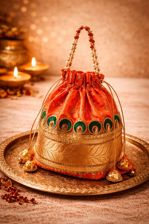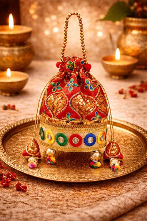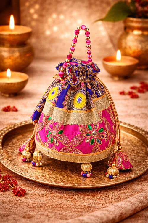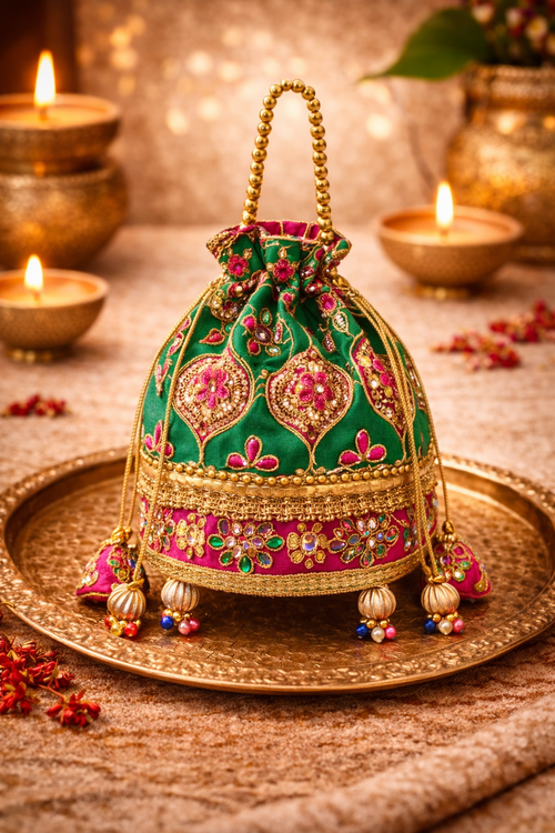 Grand Heritage Potli | Zari & Mirror Work Border | Bhagwan Vastra | Punarvsu's Finest